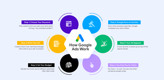 Google Ads operates on a pay-per-click (PPC) model, meaning you pay only when someone clicks your ad. Your ads appear on Google Search, YouTube, Gmail, and millions of partner websites.